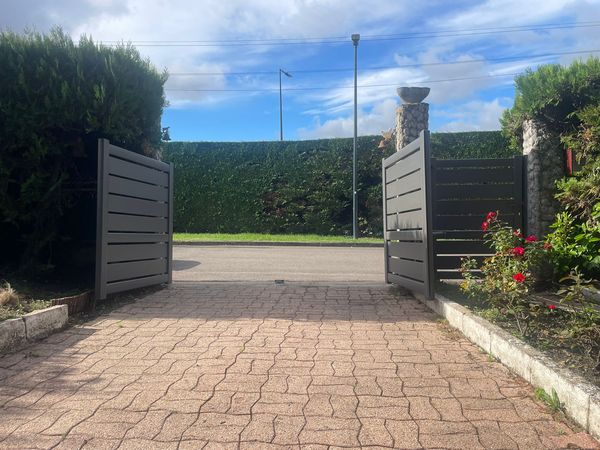 Ce portail allie design élégant, robustesse et praticité grâce à son automatisation Somfy, permettant un confort d’utilisation optimal.